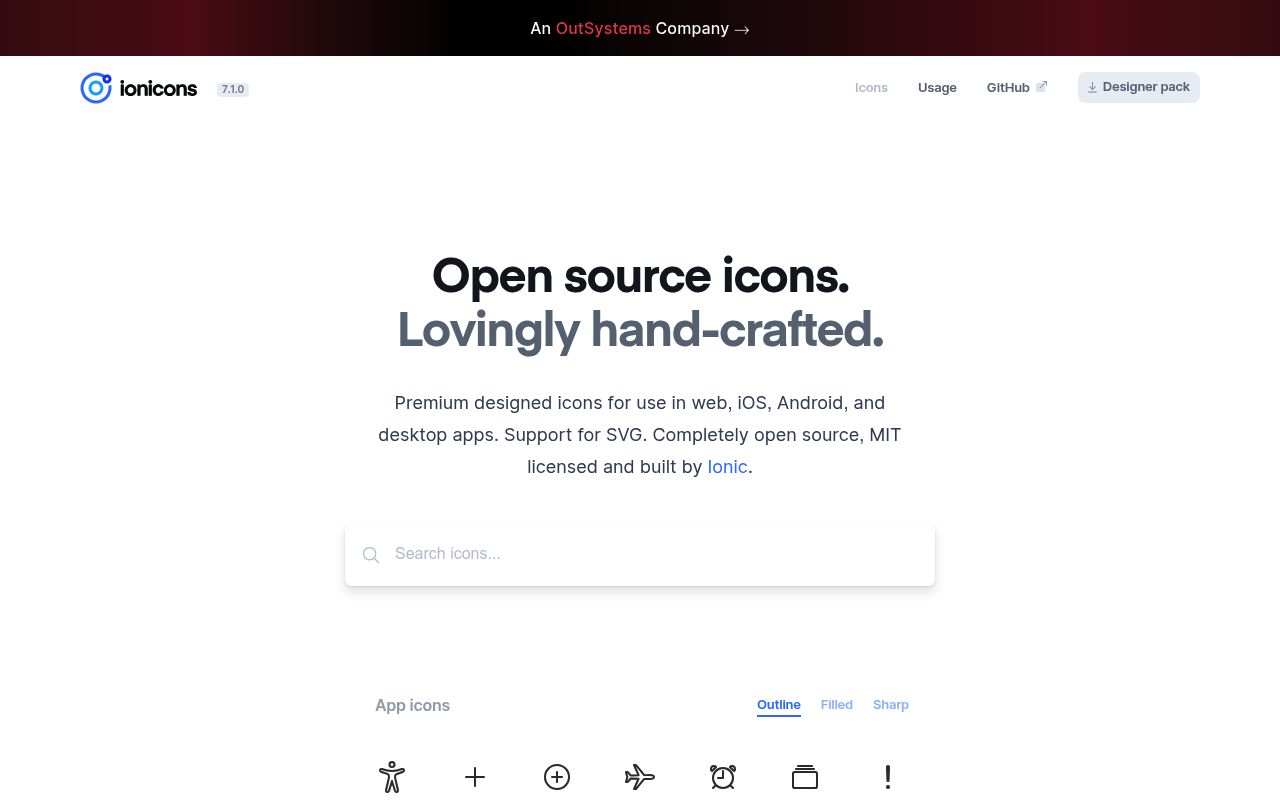 Beautifully crafted open source icons from Ionic team. All icons may also be downloaded as SVG.