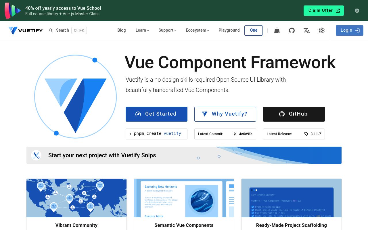 Discover the Vue.js ecosystem including component libraries like Vuetify and Element Plus, along with frameworks like Nuxt and state management tools.
